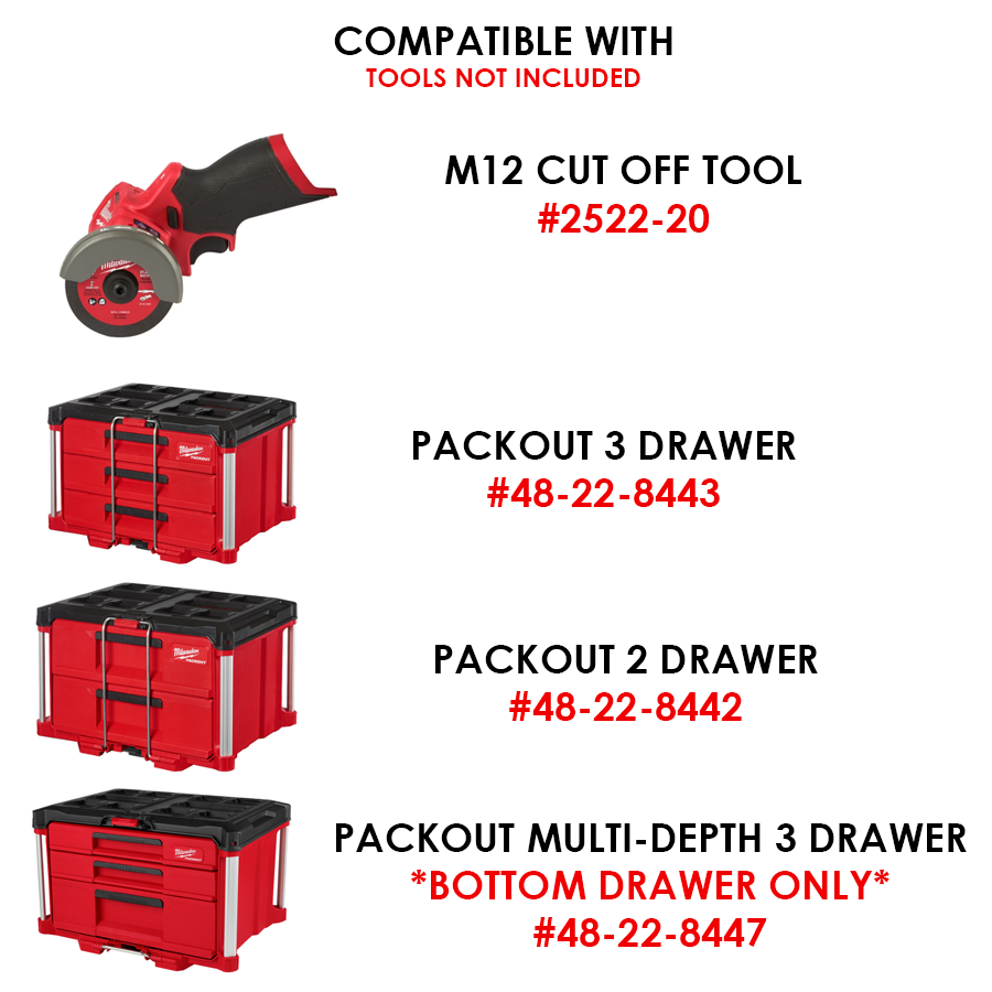 M12 FUEL Cut Off Tool Organizer for Milwaukee Packout 2‑Drawer